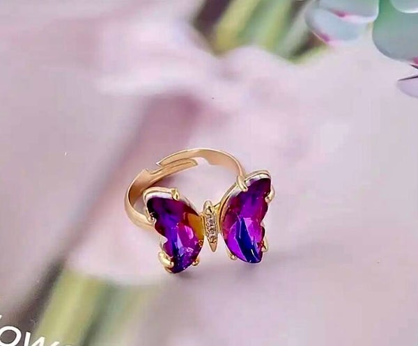 Deze verstelbare ring met vlinder is je warme vriend. Mooi, sprankelend en vrolijk.