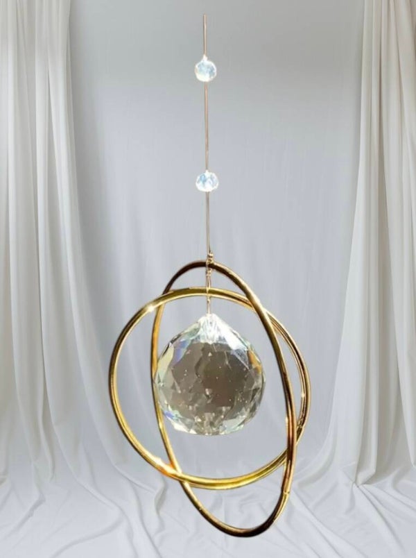 Deze zonnevanger met een diameter van 3 cm is omringd door twee gouden ringen die rond de zonnevanger draaien.