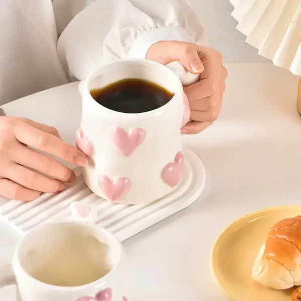 Geniet van je warme thee omringd door hartjes! Met deze grote beker ben je vervuld van liefde en kun je er extra lang ongestoord van genieten.