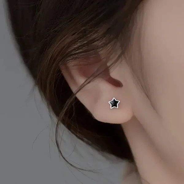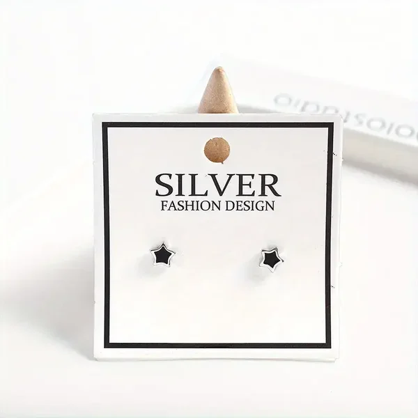 Classic Sterling Zilver 925 Oil Drop Black Star Oorbellen,