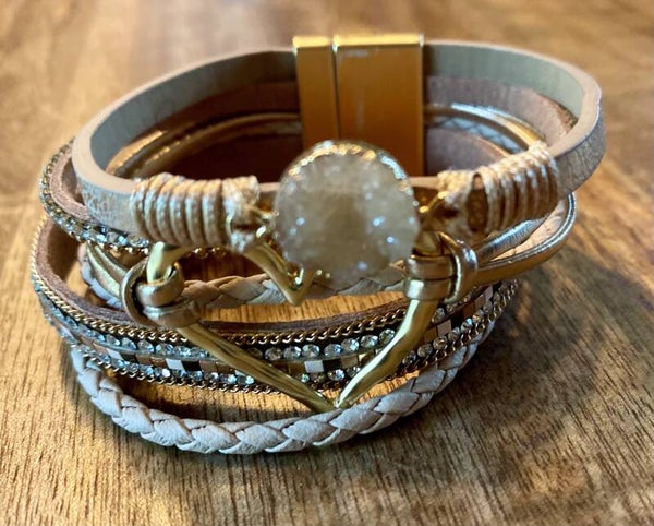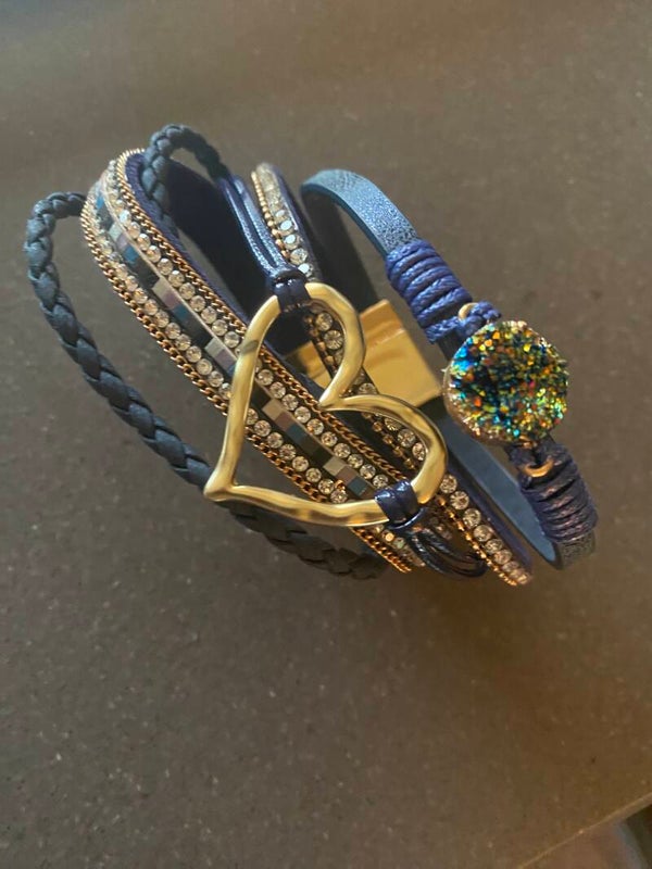 Past goed bij elke outfit. Diverse bandjes met steentjes en een prachtige glittersteen in het midden. Een groot gouden hart laat je statement naar buiten toe zien.
