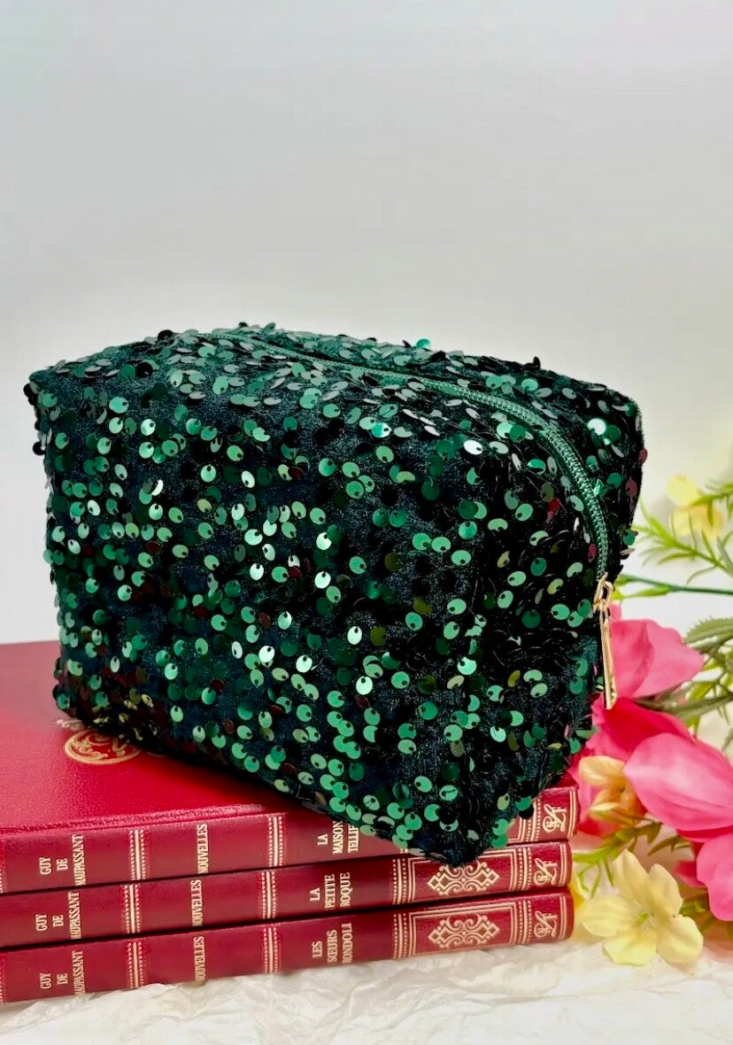 Deze met pailletten bedekte make-uptas vangt het licht bij elke beweging voor een gegarandeerd glamoureus effect. Compact maar ruim, het houdt je beauty essentials altijd binnen handbereik, of het nu in je tas is of op je kaptafel. Een chique en praktische must-have voor stijl liefhebbers! (17 x 11 x 10 cm)