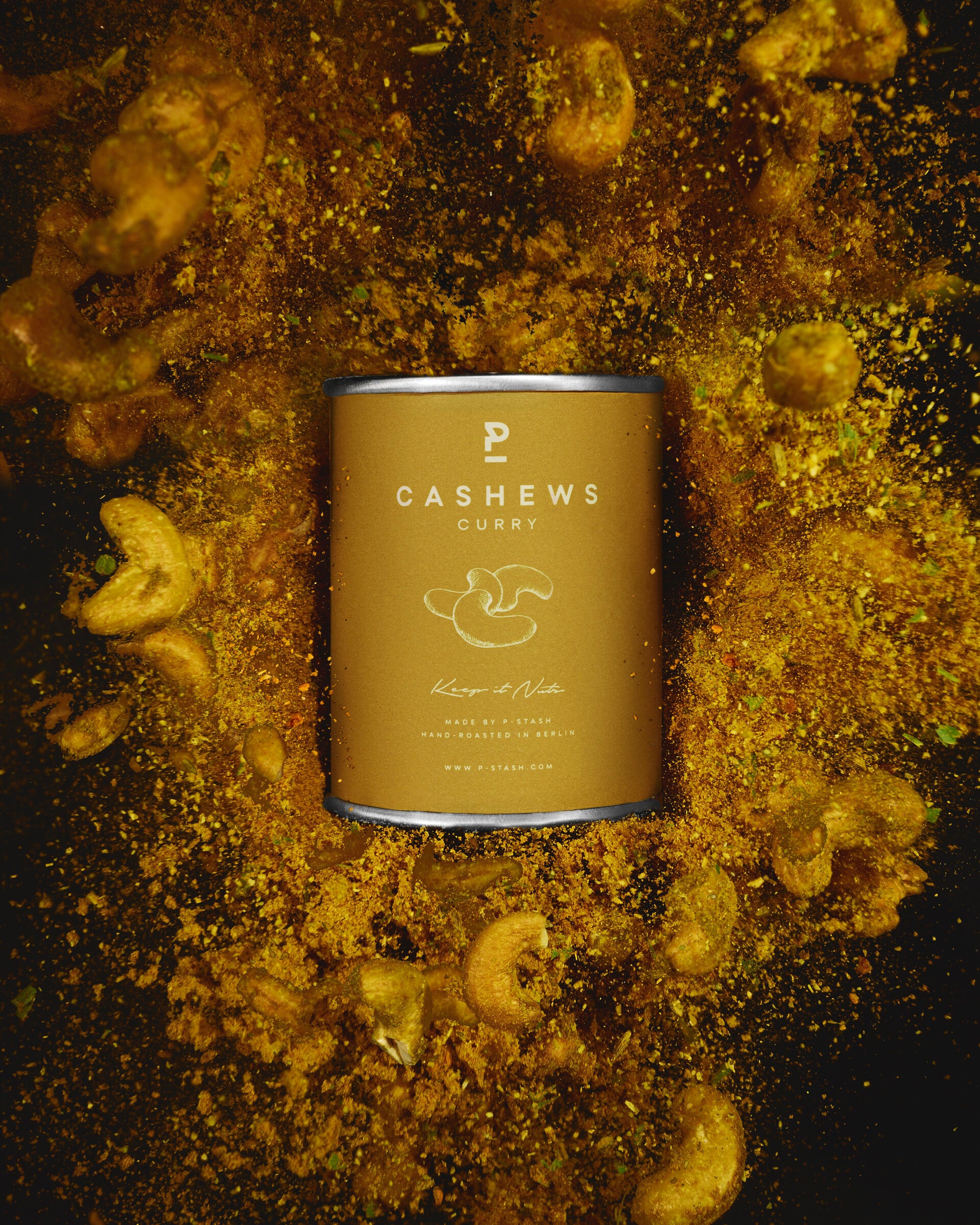 Handgeroosterde cashew-curry delicatesse: een feest voor de zintuigen uit de fabriek van P-Stash