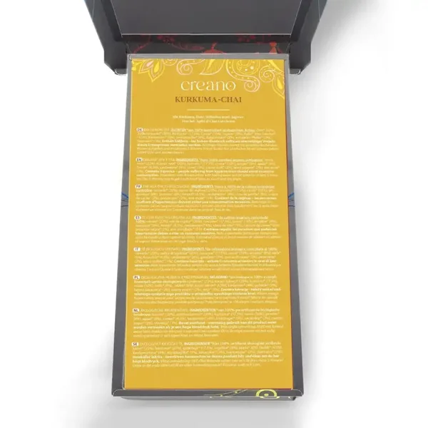 Creano Kurkuma Chai is een kaneelachtige, kruidige mix van verschillende chai-kruiden met kurkuma, appel, gember en venkel. Een verwarmende en verkwikkende theemelange voor de hele dag tot in de avond, zowel warm als koud te genieten, eventueel afgerond met wat melk/plantaardige melk. De positieve eigenschappen van de kruiden, vooral kurkuma, gecombineerd met appel, gember en venkel maken deze theemelange uniek, een chai-thee van bijzondere aard. De gember zorgt voor een lichte scherpte, aangenaam verwarmend en verkwikkend, vooral op koude herfst- en winterdagen.