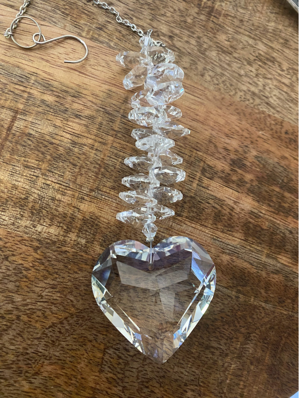 Dit dromend hart is in totaal 40 cm lang en is extra luxueus afgezet met veel kleine steentjes. Ideaal om in een groot raam te hangen.
